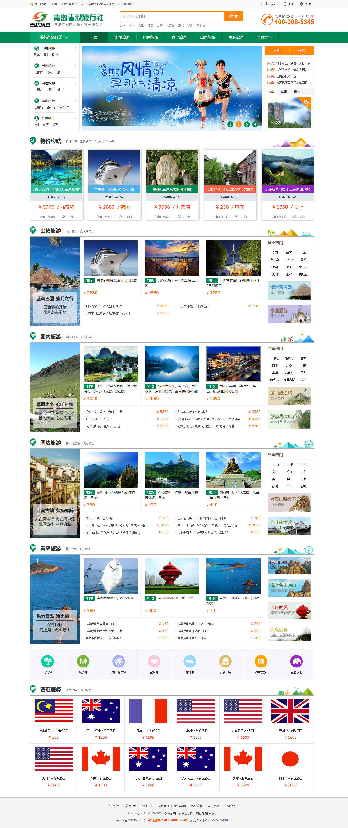 案例描述:青島春秋旅行社網(wǎng)站提供一站式個(gè)性化旅游路線(xiàn),跟團(tuán)游+自由行+公司旅游.周邊游+國(guó)內(nèi)游+主題旅游!青島旅行社排名前列的旅游公司,滿(mǎn)意100%,報(bào)名熱線(xiàn):400-008-5345!