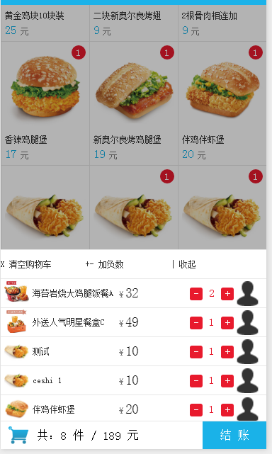 大致思路是:點(diǎn)擊商品,加入購(gòu)物車(chē),購(gòu)物車(chē)概覽變化,點(diǎn)擊購(gòu)物車(chē)打開(kāi)購(gòu)物車(chē)詳情,可進(jìn)行數(shù)量與操作員的調(diào)整,物品情況無(wú)誤后,進(jìn)入結(jié)算界面。