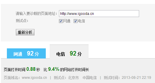 策劃了許久,改造了CMS的基礎(chǔ)結(jié)構(gòu),整合了各路徑控制方法,終于將所有網(wǎng)站資源安置在OSS,經(jīng)過(guò)測(cè)試后的結(jié)果真的很喜人,最快0.88秒打開(kāi)網(wǎng)站,這是百度測(cè)試的結(jié)果。