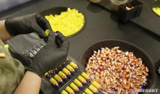 子彈制造的過(guò)程,美國(guó)猶他州Barnes公司,機(jī)器正在將火藥裝進(jìn)子彈殼。Barnes公司表示,該公司制造的子彈可用于狩獵和自衛(wèi)。