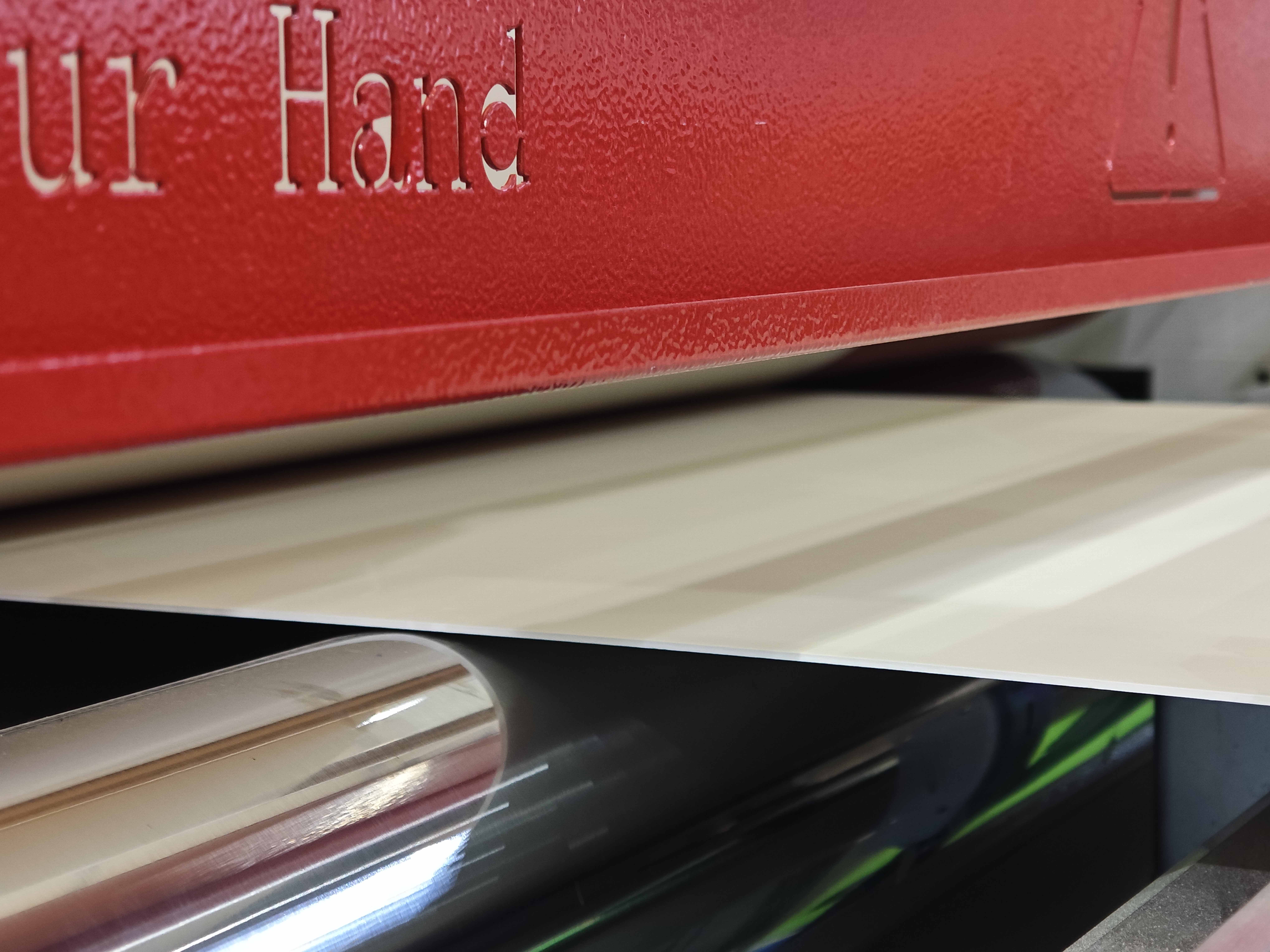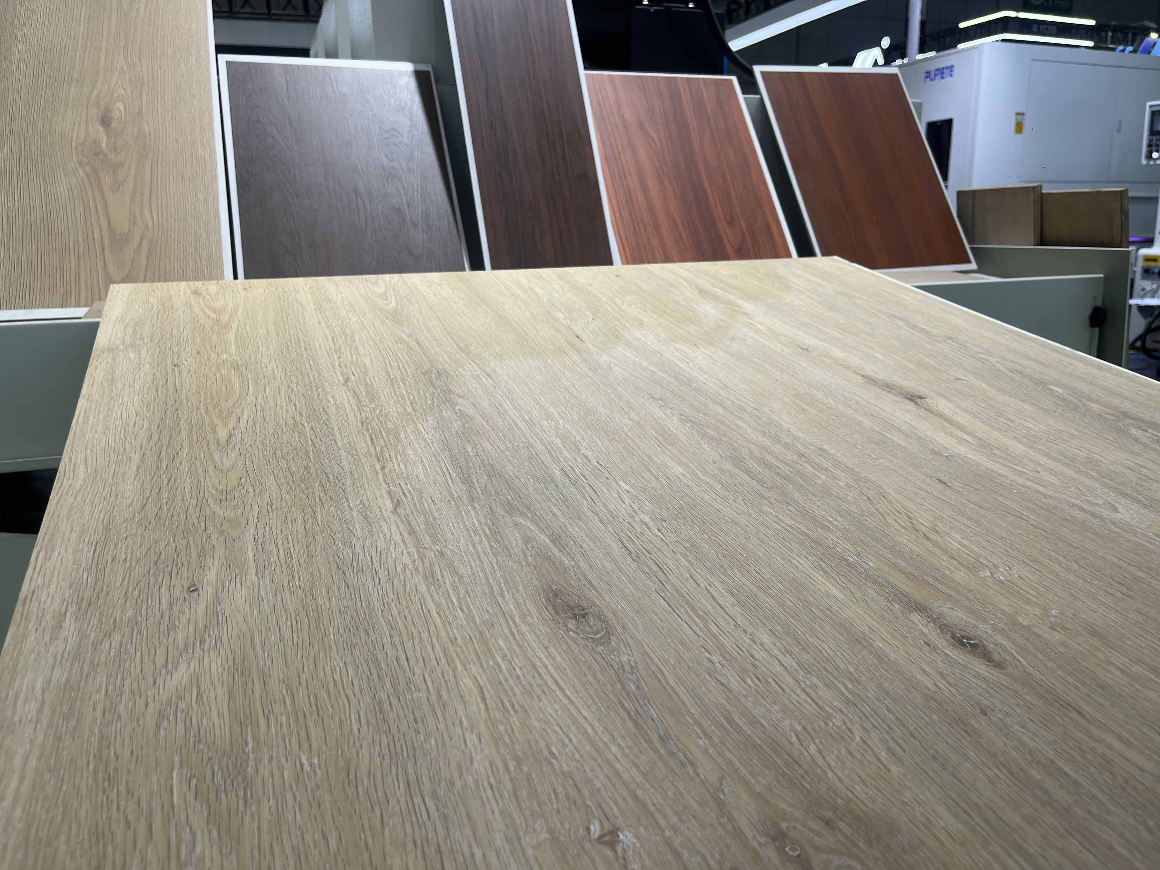涂飾仿真同步壓紋生產(chǎn)線】: SPC地板、PET地板可以采用設(shè)備實現(xiàn)精準(zhǔn)定位,較傳統(tǒng)工藝提升5倍,圖案和紋理的天然仿真還原度達90%以上,以極低的成本,復(fù)刻實木地板的質(zhì)感與紋理,產(chǎn)品品質(zhì)不變,減少設(shè)備的投入,快速占領(lǐng)市場。