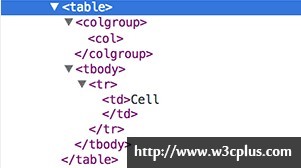 一個(gè)擁有4個(gè)列的表格在每一行都會(huì)有4個(gè)<col>元素: