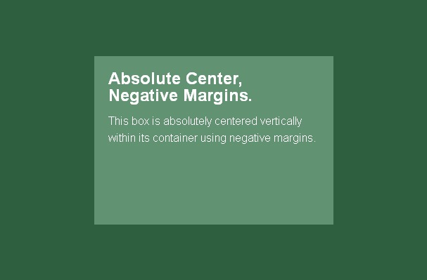 這或許是最常用的方法。如果知道了各個(gè)元素的大小,設(shè)置等于寬高一半大小的負(fù)margin值(如果沒有使用box-sizing: border-box樣式,還需要加上padding值),再配合top: 50%; left: 50%;樣式就會(huì)使塊元素居中。