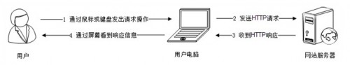 從用戶角度,網站性能就是用戶在瀏覽器上直觀感受到的網站響應速度快還是慢。用戶感受到的時間,包括用戶計算機和網站服務器通信的時間、網站服務器處理的時間、用戶計算機瀏覽器構造請求解析響應數據的時間,如圖1所示。