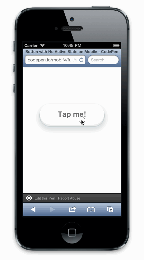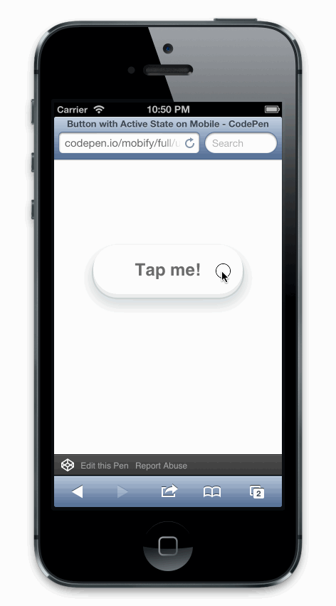 不幸的是,無論是iOS還是Android上的鏈接或者按鈕被點(diǎn)擊的時(shí)候都會(huì)忽略這個(gè)屬性。為了使用這個(gè)active狀態(tài),你需要使用JavaScript給頁面添加一個(gè)簡(jiǎn)單的事件: