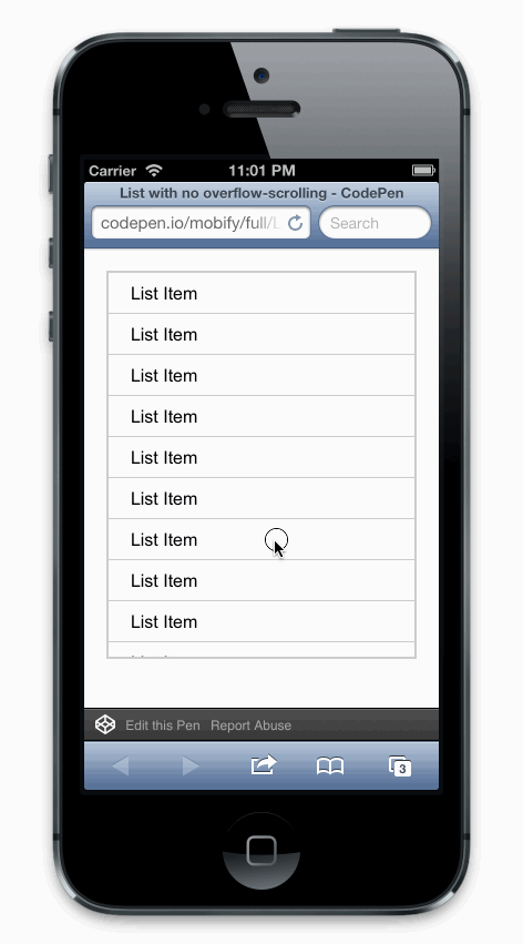 幸運(yùn)的是,Android 3+ 和iOS 5+ 都實(shí)現(xiàn)了一個(gè)新的名叫overflow-scroll的屬性,用來開啟原生的滾動(dòng)條,它運(yùn)行起來非常完美。