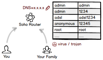如果有人惡搞重啟路由,或者給他人限速,你得感謝他的仁慈,這都算不嚴(yán)重。要是把路由器的DNS給改了,那就相當(dāng)嚴(yán)重了!公網(wǎng)的 DNS 劫持一般不會(huì)持續(xù)太久,但路由器的 DNS 劫持也許長(zhǎng)年累月都不會(huì)覺(jué)察到。