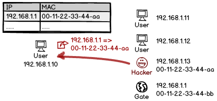 事實(shí)上,早期的系統(tǒng)還有個(gè)更嚴(yán)重的BUG:直接給用戶發(fā)送一個(gè) ARP 回復(fù)包,即使對(duì)方從沒(méi)請(qǐng)求過(guò),系統(tǒng)也會(huì)接受這個(gè)回復(fù),并提前保存里面的記錄。這種基于緩存的投毒,讓劫持成功率更上一層樓。