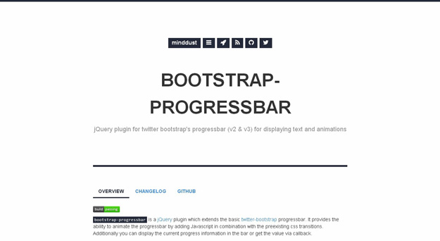 Bootstrap Progressbar 是一個擴(kuò)展了基本的Twitter的引導(dǎo)進(jìn)度條的jQuery插件。它提供了已經(jīng)存在的CSS過渡混合JavaScript動畫進(jìn)度條的能力。 此外,您可以在進(jìn)度條上顯示當(dāng)前進(jìn)度信息,或者通過回調(diào)函數(shù)獲取值。