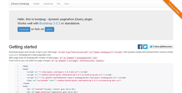 bootpag是一個動態(tài)分頁jQuery插件。與Twitter Boostrap或任何其他的html頁面都好使。
