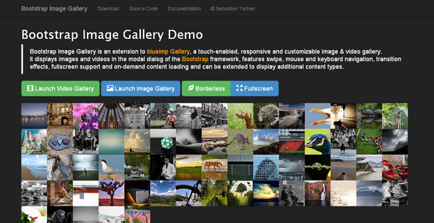 Bootstrap Image Gallery 是blueimp Gallery 的擴(kuò)展, 一個支持觸屏,響應(yīng)式和可定制的圖片和圖片庫。它用來顯示顯示的圖像和視頻,使用了Bootstrap框架的模態(tài)對話框,支持滑動功能,鼠標(biāo)和鍵盤導(dǎo)航,過渡效果,全屏支持和按需加載內(nèi)容 , 并且可以擴(kuò)展到顯示額外內(nèi)容類型。