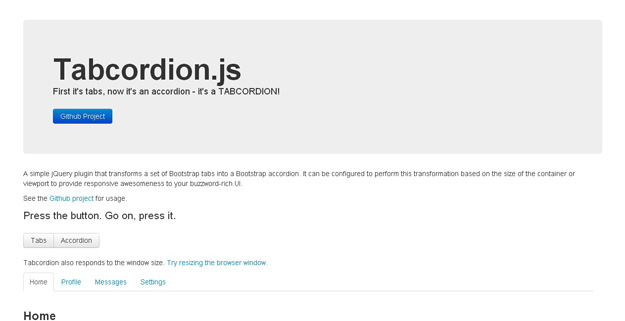 一個簡單的jQuery插件,它把一組Bootstrap 的選項(xiàng)卡成Bootstrap 風(fēng)琴折疊。它可以配置運(yùn)行容器或視窗的大小轉(zhuǎn)變,來提供響應(yīng)式的很贊的時髦的富UI。