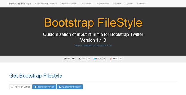 Bootstrap Filestyle是一個基于jQuery組件庫,并且可以Twitter Bootstrap化的插件,用來風(fēng)格化表單的文件字段。這個插件以一個有趣的方式來展示發(fā)送的文件,以如此的有吸引力的一種形式,簡單而高效。