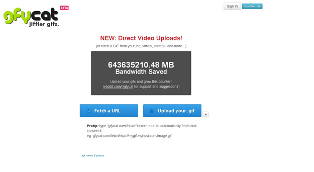 Gfycat是一個web應(yīng)用, 將 GIF 文件轉(zhuǎn)換為HTML5視頻。另外,用戶可創(chuàng)建它自己的視頻播放器或?qū)fycat嵌入到自己的頁面中。Gfycat’s 可自動將視頻轉(zhuǎn)換為用戶要求的格式。