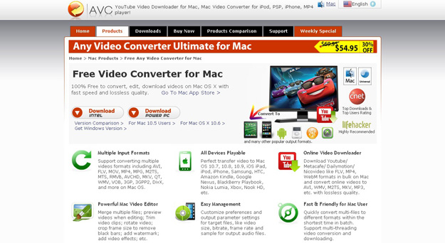 Any Video Converter支持很多格式如MP4,OGG和WebM,同樣,它也支持將視屏轉(zhuǎn)換成這些格式。另外,它同樣支持導(dǎo)出為移動設(shè)備格式。同時,它可以下載和保存Youtube視屏為不同的格式。
