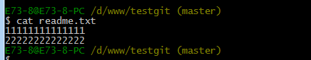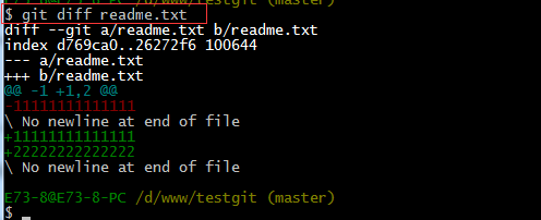 如上可以看到,readme.txt文件內(nèi)容從一行11111111改成 二行 添加了一行22222222內(nèi)容。