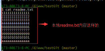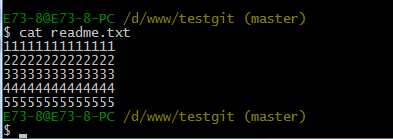 比如我現(xiàn)在在readme.txt文件里面增加一行 內(nèi)容為555555555555,我們先通過命令查看如下: