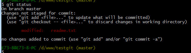 上面的命令告訴我們 readme.txt文件已被修改,但是未被提交的修改。
