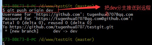 但是我首先要把dev分支也要推送到遠(yuǎn)程去,如下