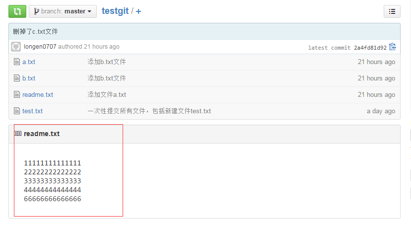 我們可以看到如上,推送成功,我們可以繼續(xù)來截圖github上的readme.txt內(nèi)容 如下: