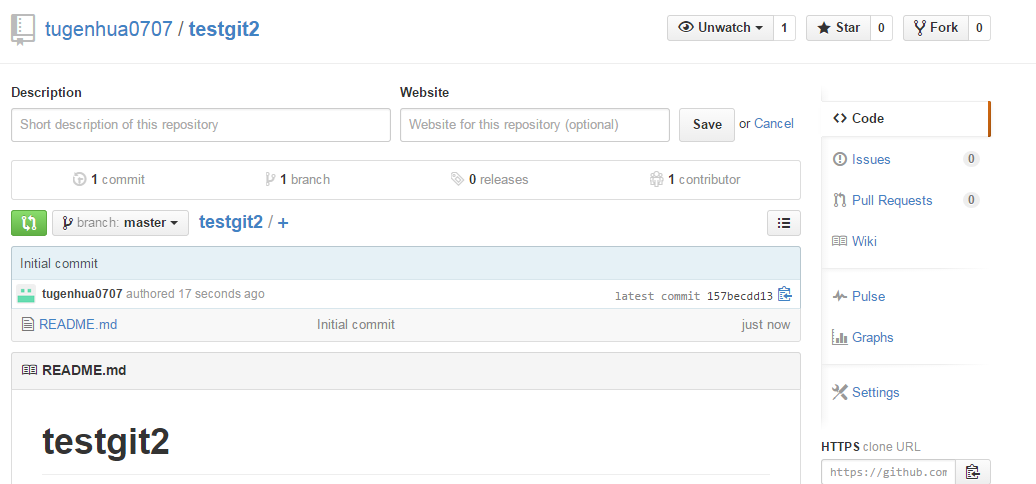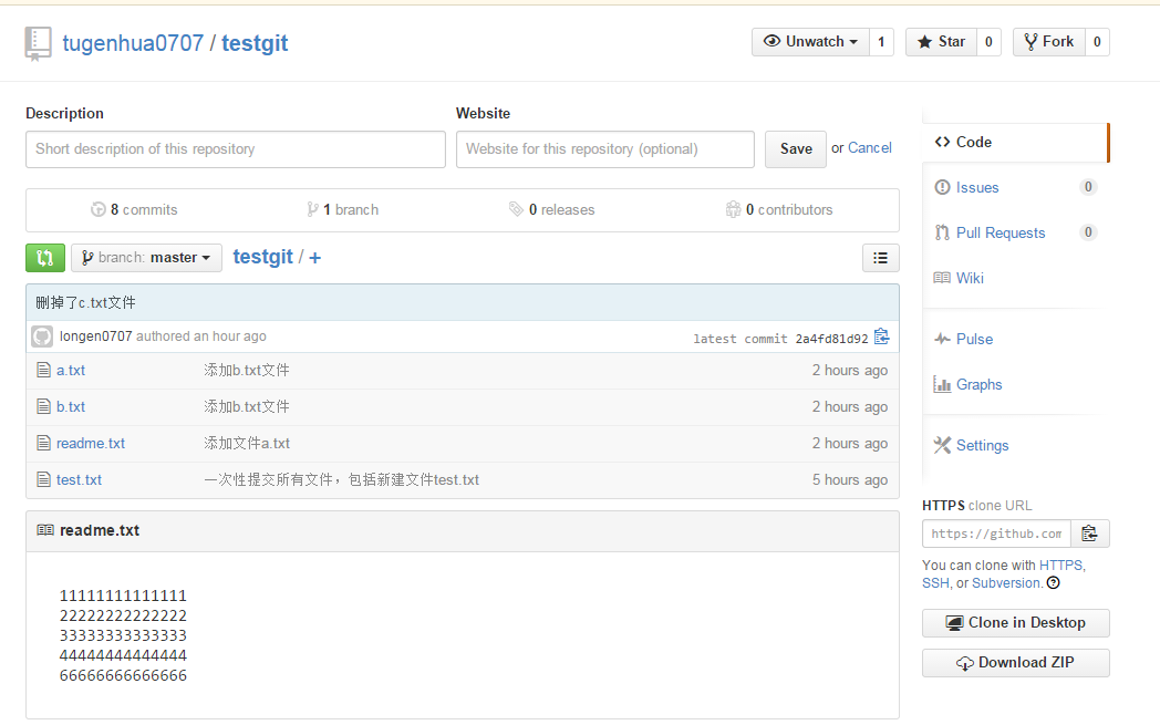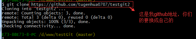 git clone https://github.com/tugenhua0707/testgit 從遠(yuǎn)程庫中克隆