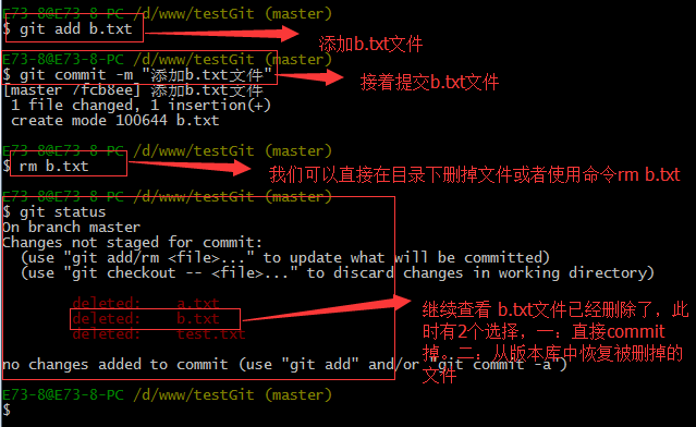 可以使用如下命令 git checkout — b.txt,如下所示: