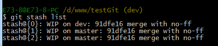 工作區(qū)是干凈的,那么我們工作現(xiàn)場(chǎng)去哪里呢?我們可以使用命令 git stash list來查看下。如下: