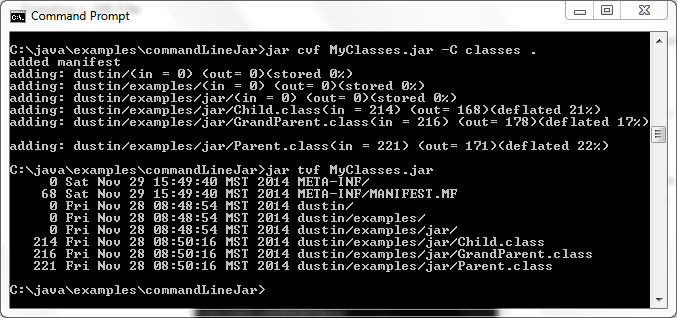 如果我不想在運行jar命令時明確地切換我的當(dāng)前目錄到最合適的目錄,我可以使用-c選項指示jar命令明確地去做到上面的效果。