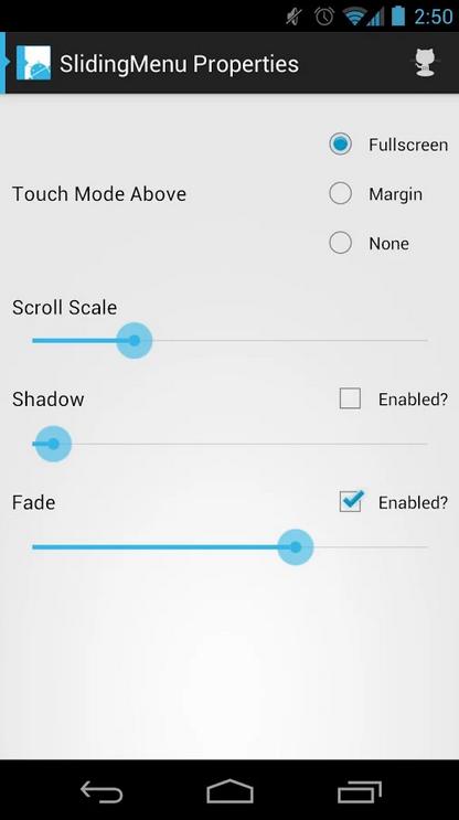 關(guān)于SlidingMenu的布局文件中的一些屬性的解釋?zhuān)蠹铱梢缘狡涔俜骄W(wǎng)站上查找。另外附上一篇網(wǎng)友使用SlidingMenu的心得文章:Android SlidingMenu側(cè)滑菜單使用介紹。