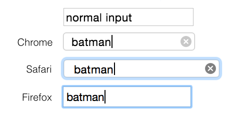 <input type="search">對(duì)于padding,border還有20世紀(jì)那該死的圓邊風(fēng)格的邊框有些隨意,在各個(gè)瀏覽器中的顯示效果完全是不可控制的: