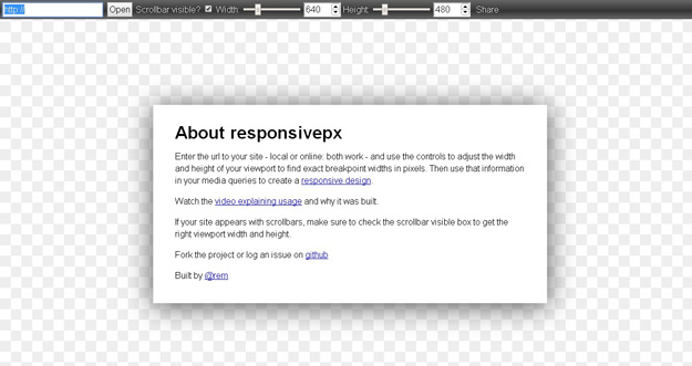 Responsivepx 是一個(gè)功能簡(jiǎn)單、但卻很方便實(shí)用的測(cè)試工具,可以測(cè)試網(wǎng)頁(yè)在不同尺寸的顯示器上所呈現(xiàn)的效果。此外,Responsivepx 能讓你自行調(diào)整要顯示的尺寸長(zhǎng)寬px值。用戶即可在線使用,也可以在本地上對(duì)網(wǎng)頁(yè)進(jìn)行測(cè)試。
