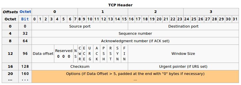 TCP片段的頭部格式