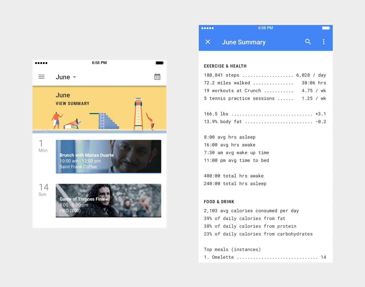 需要注意的是,并不會通過你所做的事情來判斷什么,它們僅僅是一個數(shù)據(jù)統(tǒng)計的列表。更重要的是接下來的部分,日歷會創(chuàng)建一個總結表單,并為你提出建議,怎樣調整可以讓自己更快樂、更健康、更有效率,讓你成就更好的自己。